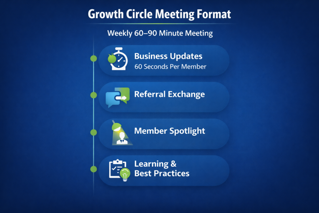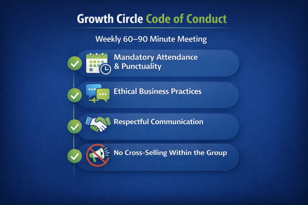 With a clear focus on accountability and ethical conduct, Growth Circle follows a systematic meeting format that encourages active participation and measurable outcomes. The platform is relationship-driven rather than transactional, creating an environment where credibility, trust, and sustainable business growth naturally follow.